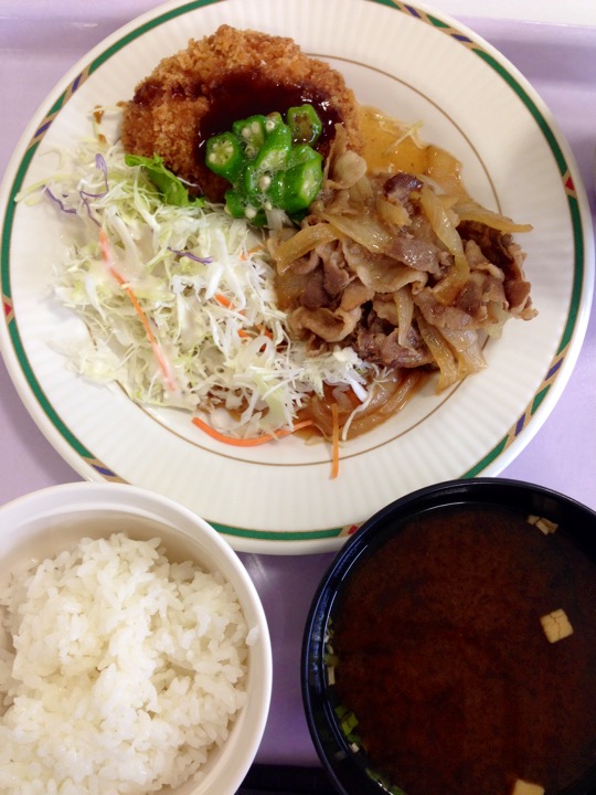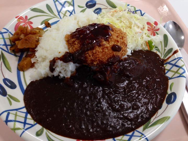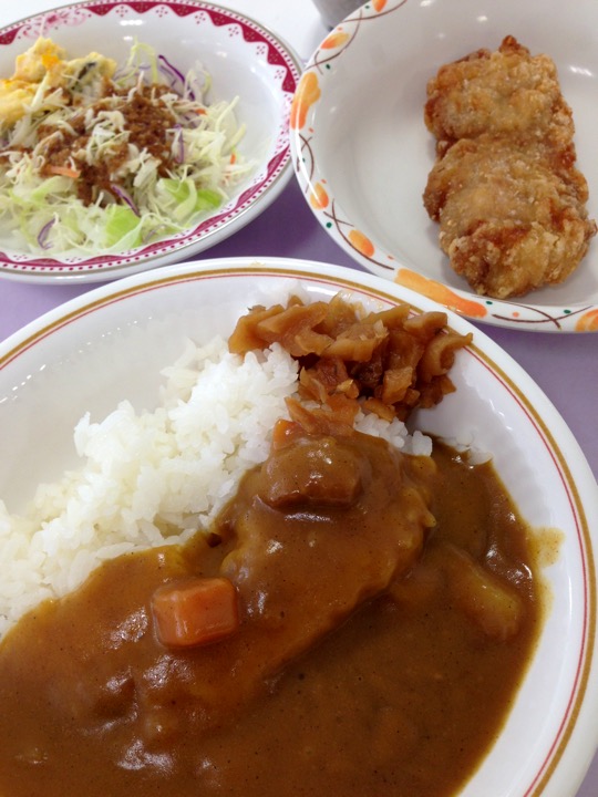 カレーライスの小サイズ、和風チキン、サラダをいただきました。