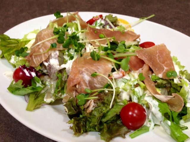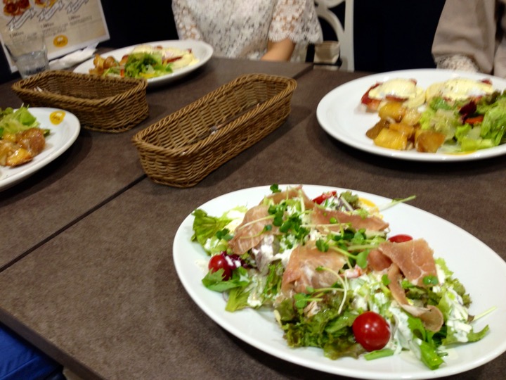昨日の女子会?でいただいた、プロシュートのサラダが乗ったパンケーキ。
