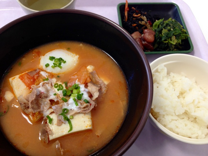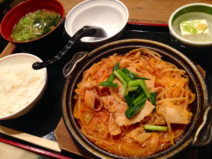 街かど屋という定食屋さんで、キムチ鍋定食をいただきました。
