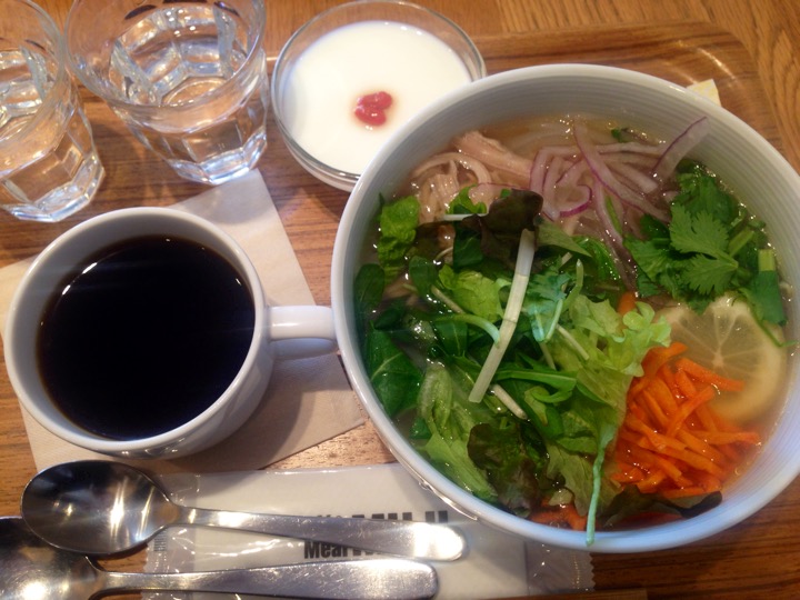 鶏肉のフォーと杏仁豆腐、コーヒーをいただきました。
