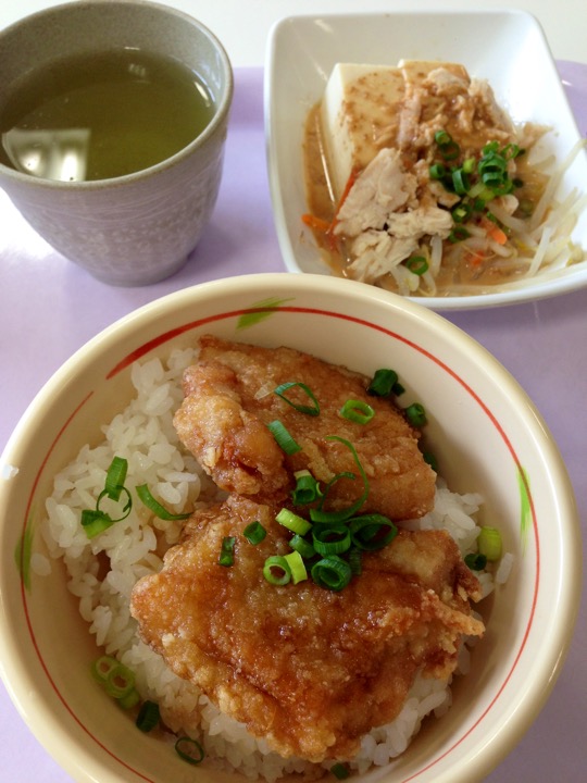 鶏の竜田揚げ丼(小サイズ)と、バンバンジー豆腐をいただきました。