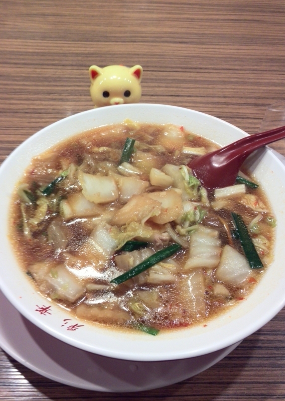 巨漢の弟はラーメン好きなのでラーメン屋にいきました。奴はラーメンと台湾まぜ丼も頼んでいました。夜はニラ玉餡掛けと野菜のコンソメ煮とトマトでした。
