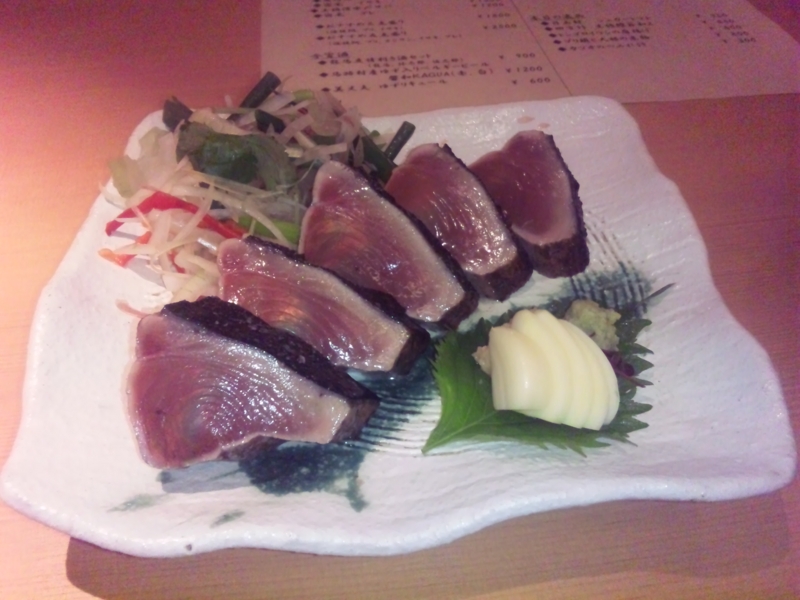 藁焼きカツオのたたき柚子ポン酢。