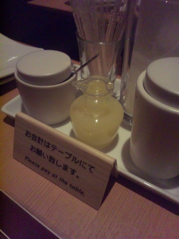 テーブルに備え付けの柚子果汁。たっぷり使えるのが嬉しい。