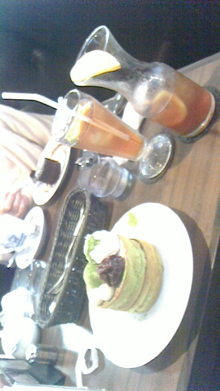 宇治金時のスフレパンケーキダブルとアイストロピカルフルーツティー