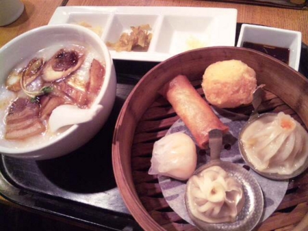 食後にいちじく入りのチーズケーキ、中国茶(龍井茶)