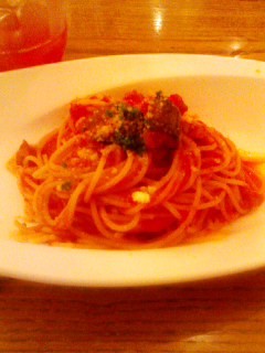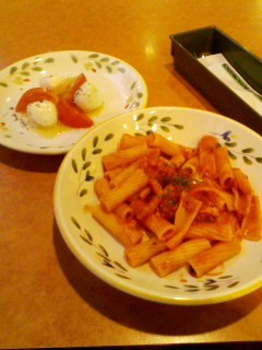 鶏肉とエリンギと水菜のペペロンチーノ(柚子胡椒風味)と、