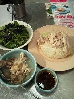カオマンガイ大盛りにパクチーサラダに骨入りスープ、で腹いっぱい。