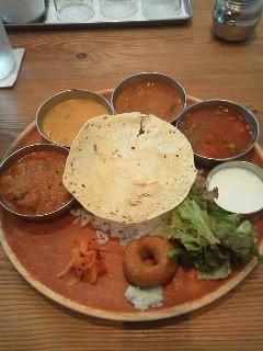 本日の晩飯は八重洲口からちょっと歩いたとこにある『ダバ・インディア』で、代表メニューのマドラスミールズ(ノンベジタリアン)を。