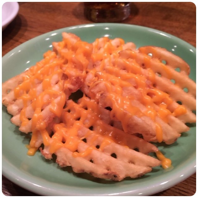 デビルクラフトで食べたオニオンリング、サラダ、ピザ♪