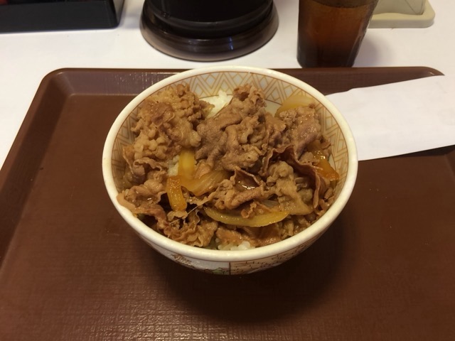 都産のイベントの時はいつも立ち寄るすき家の牛丼で昼食に。