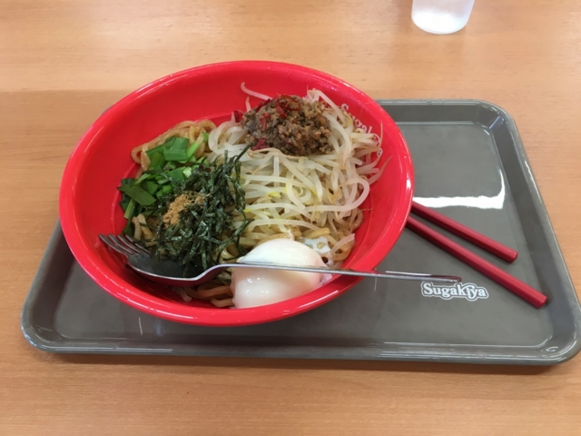 もちもちの太麺、あまり辛くなくて美味しかったです。