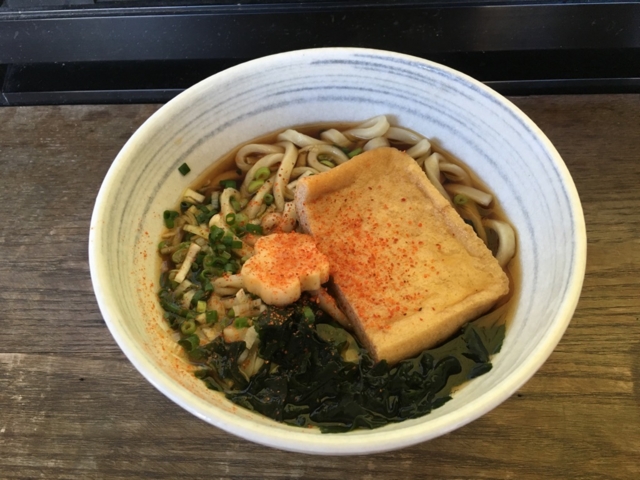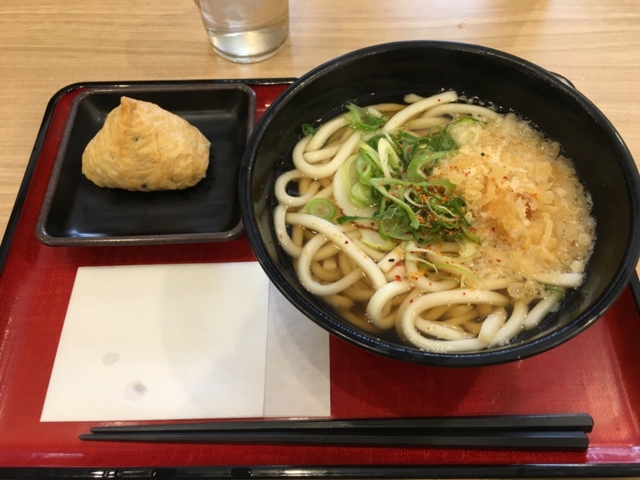 天王寺駅の立ち食いうどん店でかけうどんといなりをいただきました。