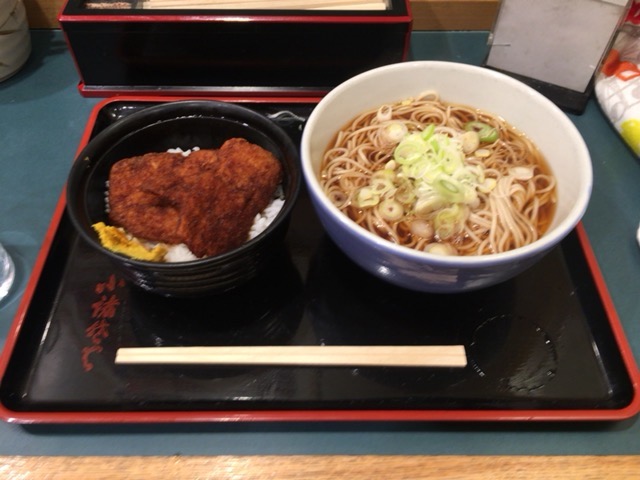 近くのそば屋でソースカツ丼とかけそばのセットをいただきました。