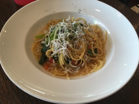 パスタは菜の花としらすのペペロンチーノ︎☺︎