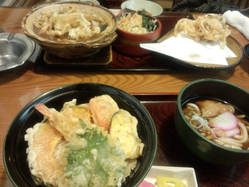 ミニ天丼セット。ご飯はかなり少なめだけど、