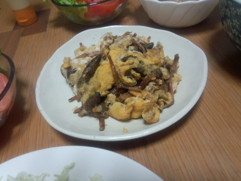 土筆の卵とじ炒め。もはや何の写真かわからん(笑)