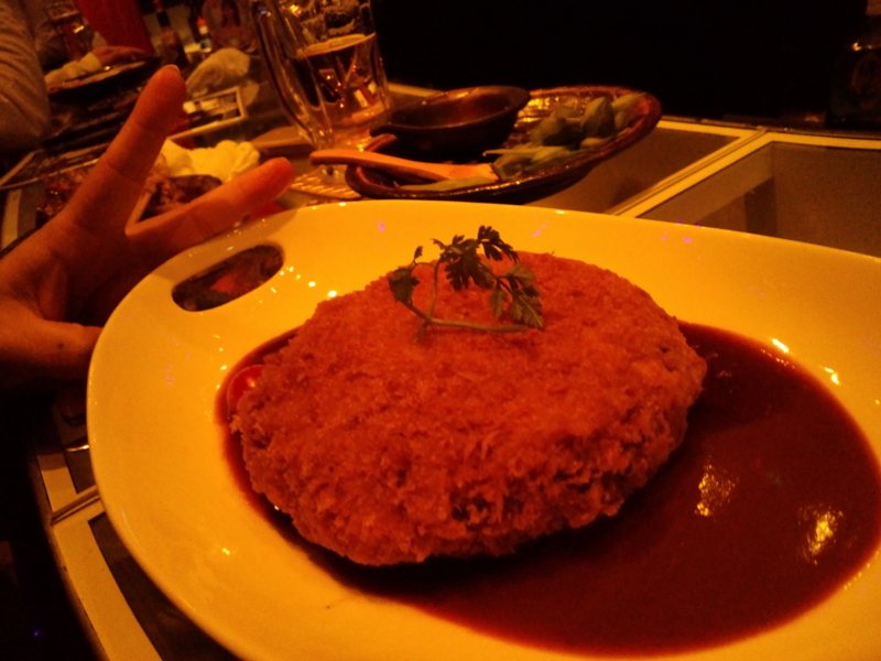 ハンバーガーなんですけど、煮込みなのでお肉が柔らかかったです。デミグラスソースもたっぷりでしたよ。固めのパンでおいしかったです^^
