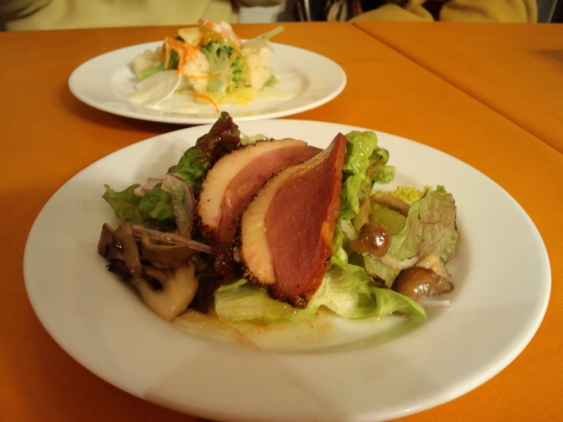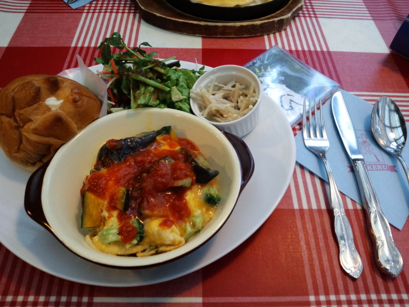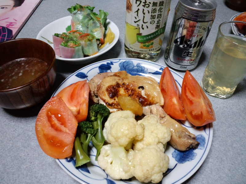 母が付け合わせの野菜を盛って盛ってくれたので、チキンが霞んでいます…。