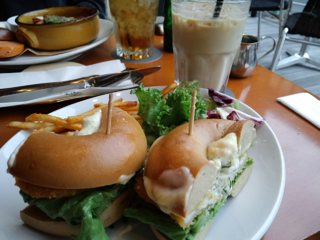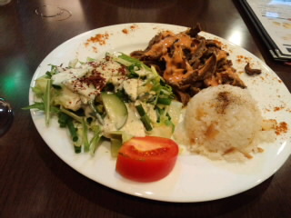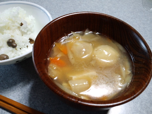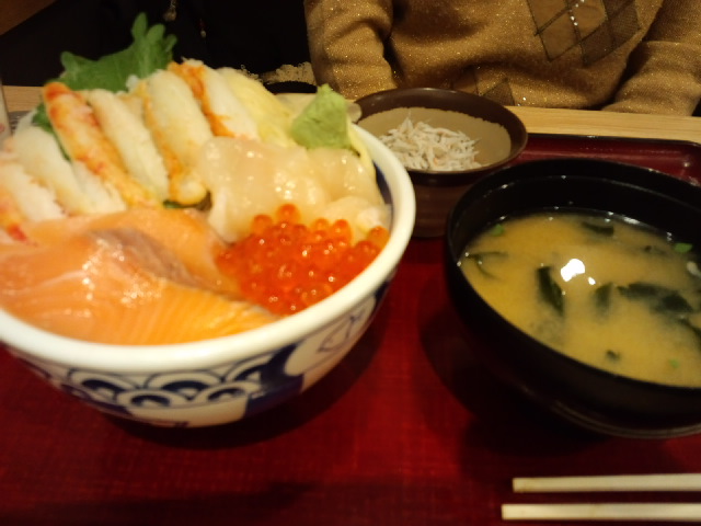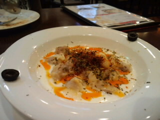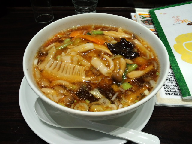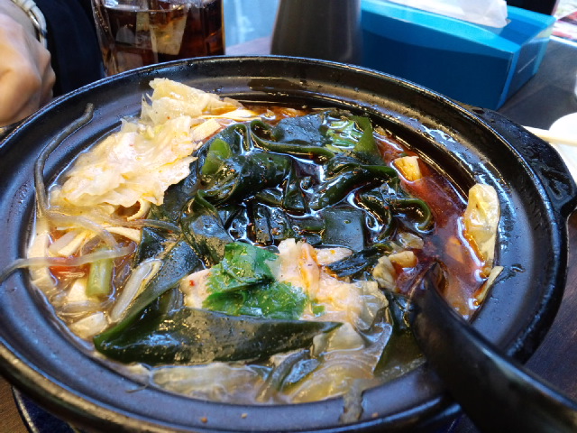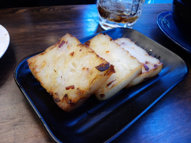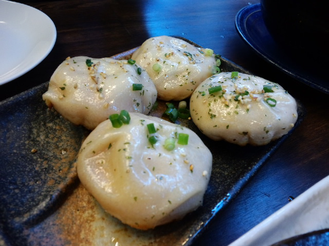 蟹の小籠包あつあつと、マーラーなんとか(湯の下に火っていう字でした)、大根餅。マーラーなんとかは辛いけどあっさり、お豆腐みたいな味の麺風のものが入っていました。ワカメもたっぷりで、おいしかったです。