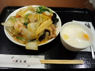 華正楼のイートインで什景炒麺とデザートのセットです。