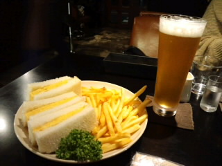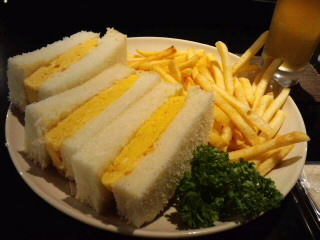 カヤバ珈琲でたまごサンド(夜はポテト付)、厚焼きたまごのサンドイッチだよ~。
