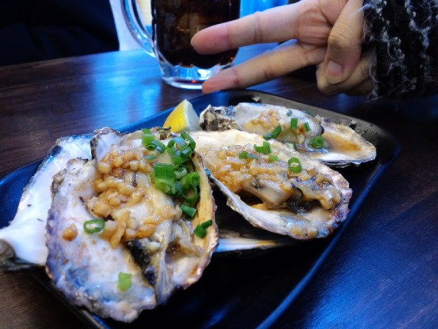 焼き生牡蛎(小)とタイラ貝で始まり始まり。
