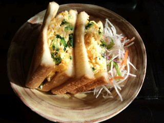 ゴーヤと桜エビのスクランブルエッグ、ホットサンド。