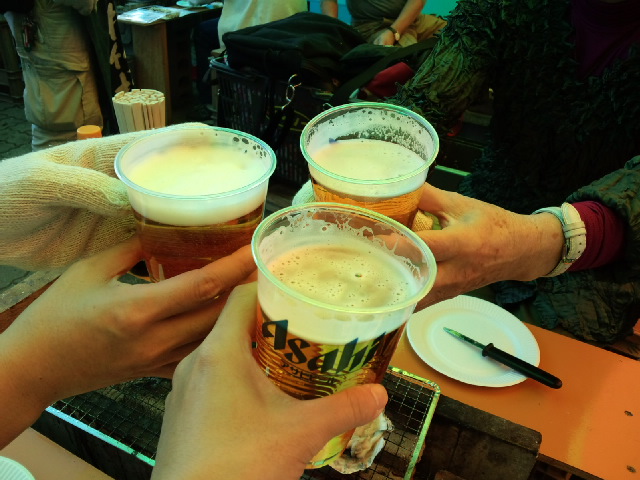 ピザとビールで、お疲れさまです。