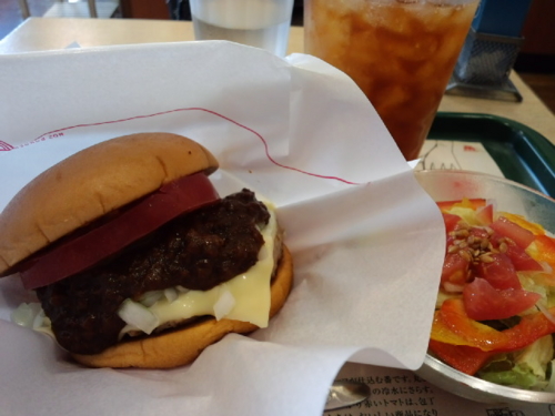 カレーモスチーズバーガーの予定でしたが、リッチモスチーズバーガーに