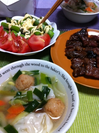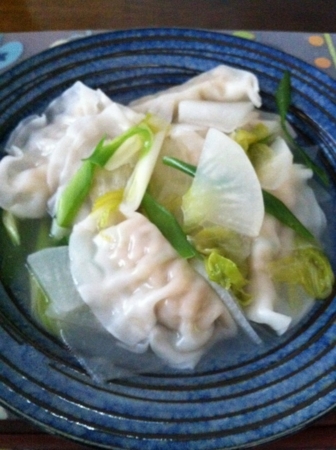 晩ごはんにレタスたっぷりミートボールのスープを作りました。