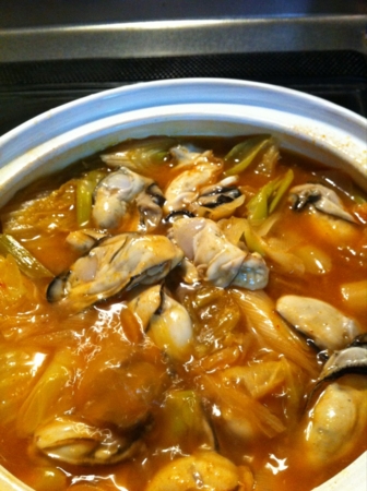剥き牡蠣をいただいたので牡蠣鍋にしました。