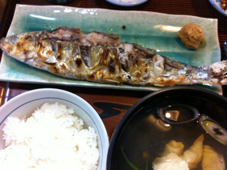 紋別のまるとみ食堂でニシンの焼き魚定食をいただきます。