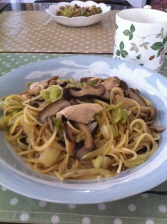 急きょパスタを茹でて絡めてみました。