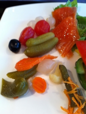 瓶に入ったピクルスが5種類もあって全部食べてみました。