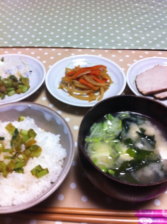皮をキンピラに、葉をゴマ油で炒めてしょう油で味付てみました。