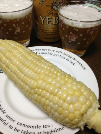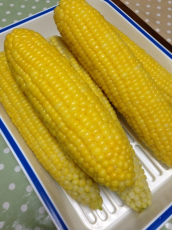 美瑛の四季彩の丘の売店で買ってきた、とうきびをいただきます。