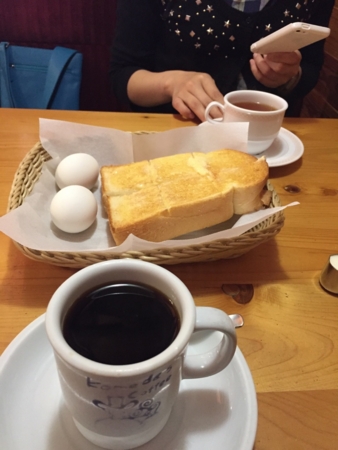 コメダ珈琲でコーヒーを頼みトーストとゆで卵がついてきました。