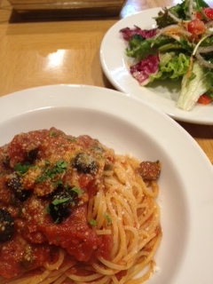 プッタネスカってここで初めて食べたけど、オリーブとかケッパー入っててすごい美味しいです。