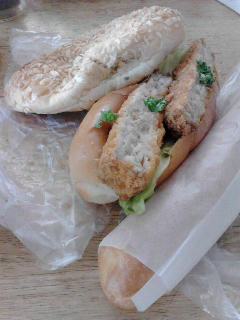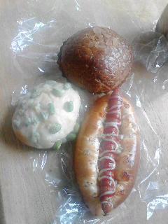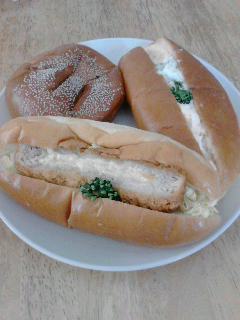 焼きカレーパン、キャベツメンチカツサンド、ミルクフランス。