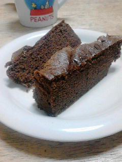 でっかい黒糖かりんとうとかふがしとかに見えますが、チョコケーキ(卵バター抜き)です。