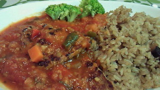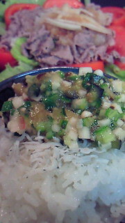 無印の肉骨茶飯(パクテー)に塩麹豚のトマト煮込みをかけてみたよ〜♪