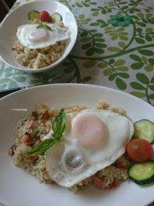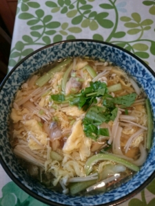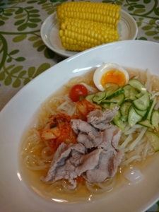 かき卵入れて誤魔化す。でも食べてる最中から暑いー!湿度が高いね。