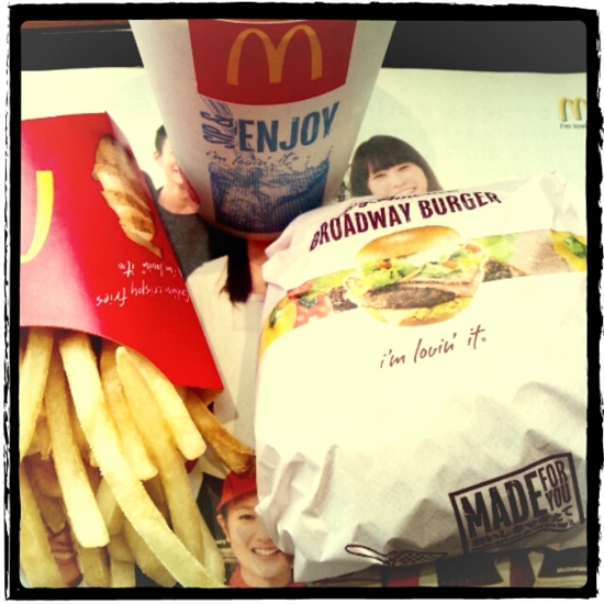 今日は帰っても夫がいないし、仕事帰りに乗り換え駅でマック。