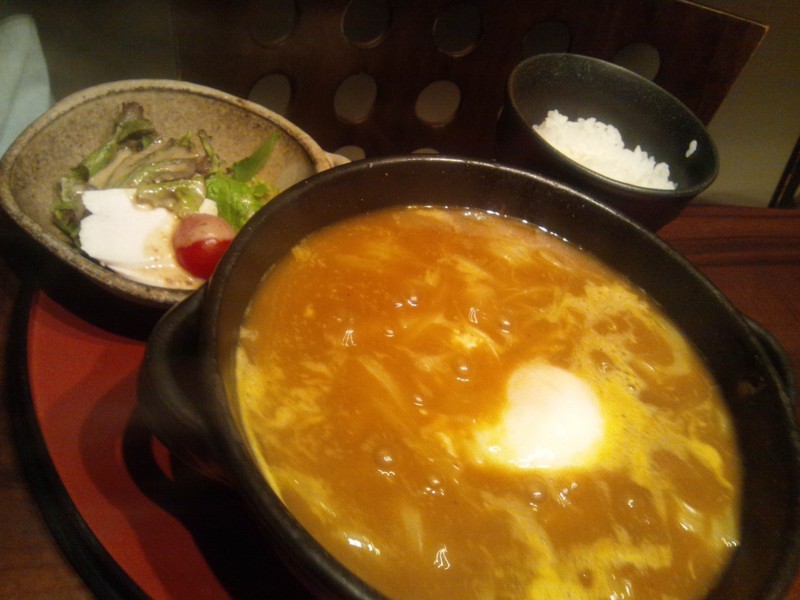 お昼ご飯の友達のカレーうどんと私の親子丼。
