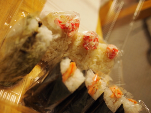 ゆのたに心亭のおにぎり(蟹、鮭、昆布)