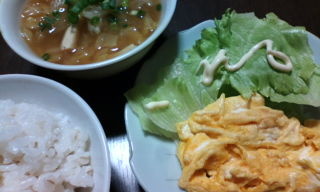 自分だけのご飯は一品か二品だけになりがちでした。残り物(おでん風と茹でもやし)に小鰺を南蛮漬けにしようと揚げて甘酢にくぐらせた物、茹でた小松菜で品数が増え、ちょと豪華です。