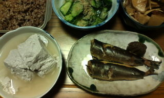 圧力鍋で煮た骨がついたままの鰯、丸かぶりでも骨を感じないし美味しい〜♪。今日はカルシウムたっぷりとるよ。圧力鍋の力、偉大!。