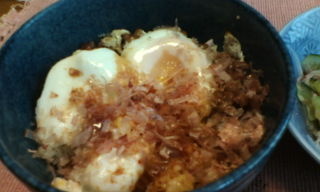 昼食 焼き納豆丼(ご飯に納豆についていたタレをごはんにかけ、仕上げにネギを散らす)色合いが綺麗だったのに写真の撮り忘れ。