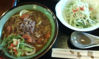お昼に久万高原ふるさと旅行村にある「なごみ亭」でカレーうどんとサラダをいただきました。ここは蕎麦がきカレーがお薦め(B級グルメ)なんですが、蕎麦が食べられないのでうどんでお願いしました。蕎麦つゆを使ったカレーうどんで、上にのっている黒豆で作った味噌の肉味噌が美味しかった♪。食後のコーヒーも、食前にいただいたリンゴのシャーベットも美味しい。近ければちょくちょく行きたいが、1時間半かかっては腰が重い。